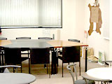 商談スペースとなっており、小さめのテーブルがいくつも並んでいます。新しい資料から古い資料まで、豊富な資料が揃っておりますので、活発な会議・商談が日々行われております。 |